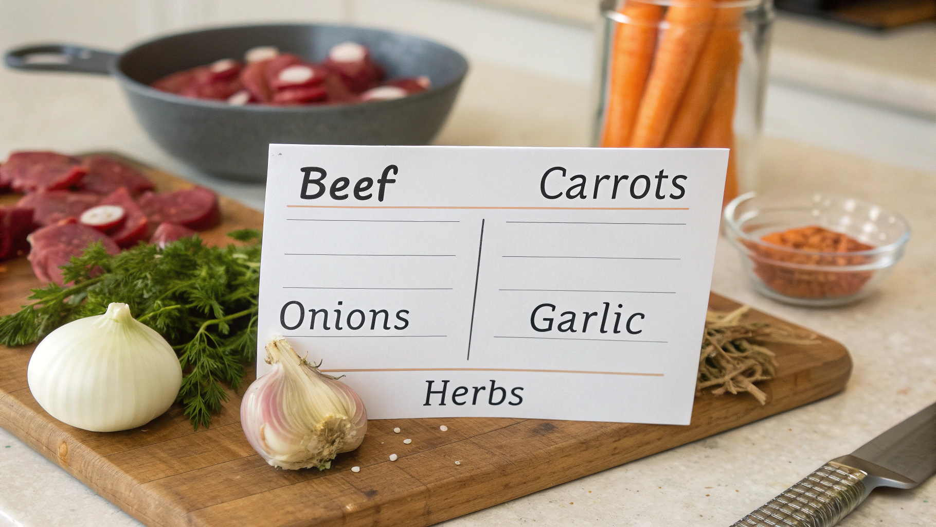 Commencez par éplucher et couper les carottes en rondelles de 1 cm d'épaisseur. Pelez et émincez finement les oignons. Écrasez légèrement les gousses d'ail tout en les laissant entières. Assurez-vous que votre viande est bien séchée avec du papier absorbant pour garantir une meilleure saisie.
