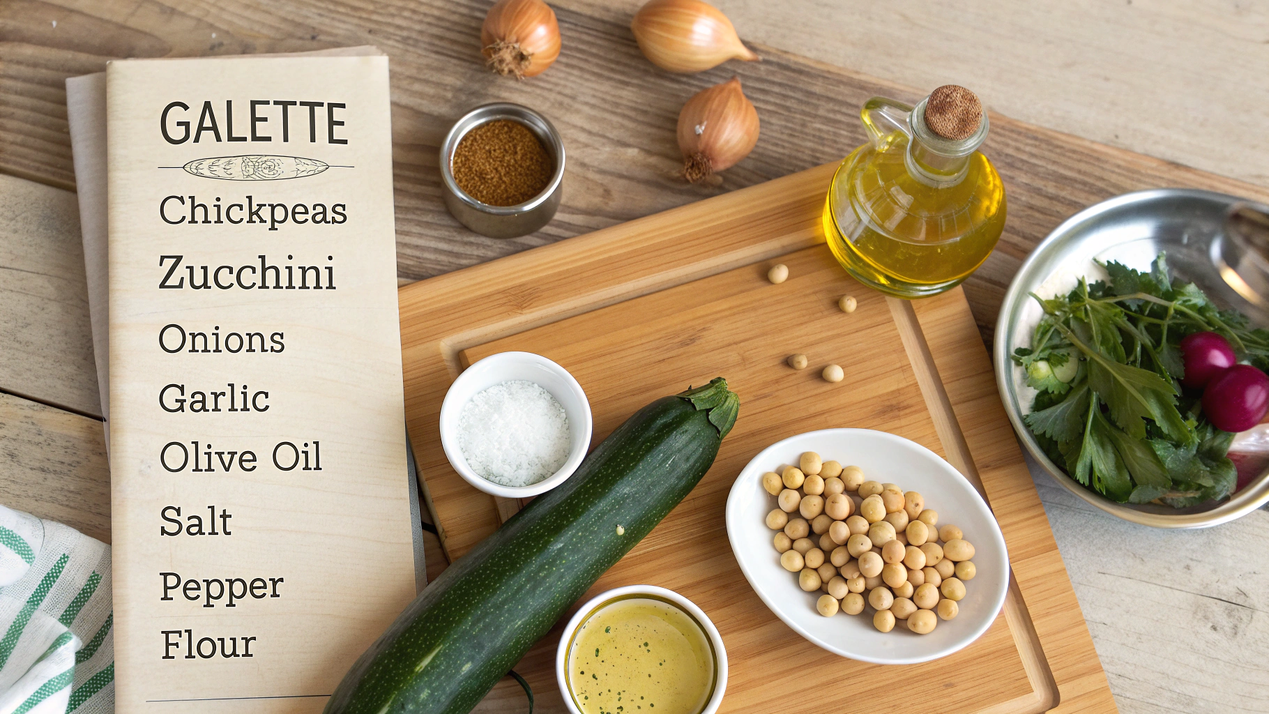 Pour environ 12 galettes pois chiches courgettes: