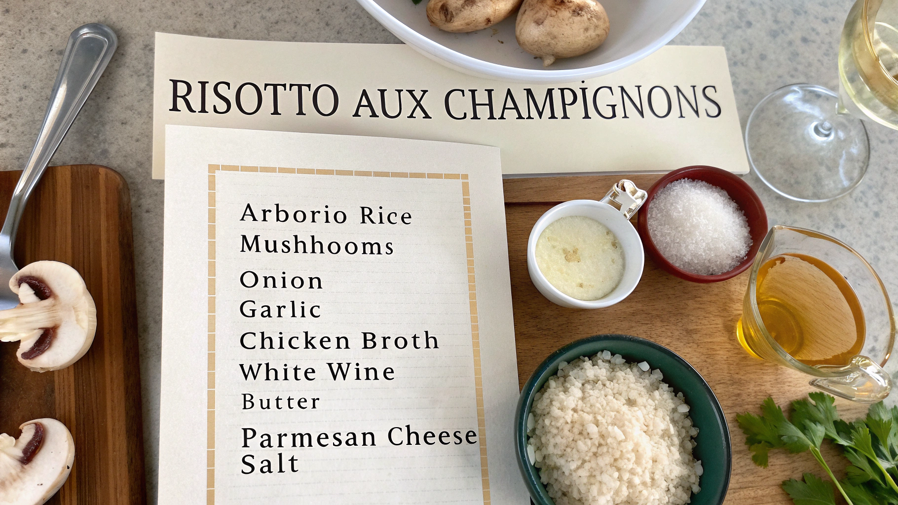 Substitutions possibles: Remplacez le riz arborio par du riz carnaroli pour une texture encore plus crémeuse. Les champignons peuvent varier selon la saison – les cèpes offrent une saveur boisée incomparable à l'automne, tandis que les girolles apportent une note légèrement poivrée.