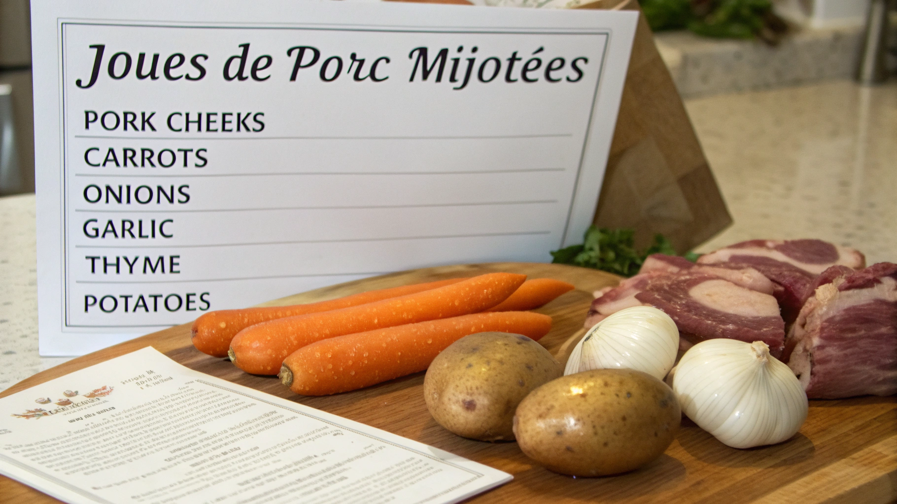 Substitutions possibles : Remplacez le vin rouge par du cidre pour une version plus douce, ou utilisez du bouillon de légumes pour alléger la recette. Les joues de veau peuvent également remplacer celles de porc pour une texture encore plus fondante.